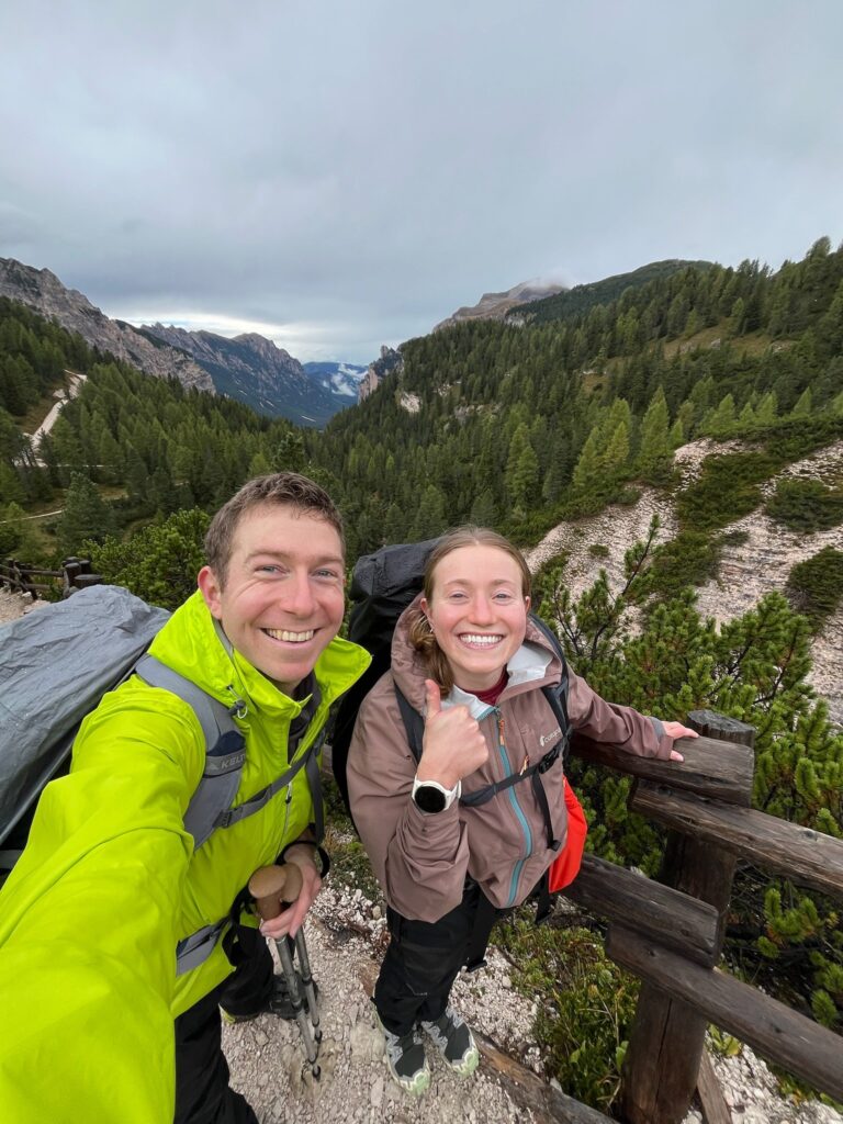 Their journey began in the heart of the Italian Dolomites, near the town of Cortina d’Ampezzo (the co-host of the 2026 winter Olympics!), where they spent three breathtaking days hiking on the Alta Via 1. Each day brought awe-inspiring mountain views, challenging and rewarding trails, and evenings spent in cozy rifugios – traditional alpine huts known for their hospitality. Will and Olivia were treated to warm, home-cooked meals prepared by their hosts and fell asleep each night in comfortable beds dreaming of the next day’s adventures.