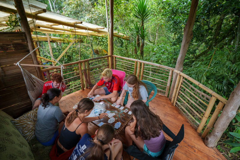 Students on Costa Rica Mountains & Coast playing cards before dinner.