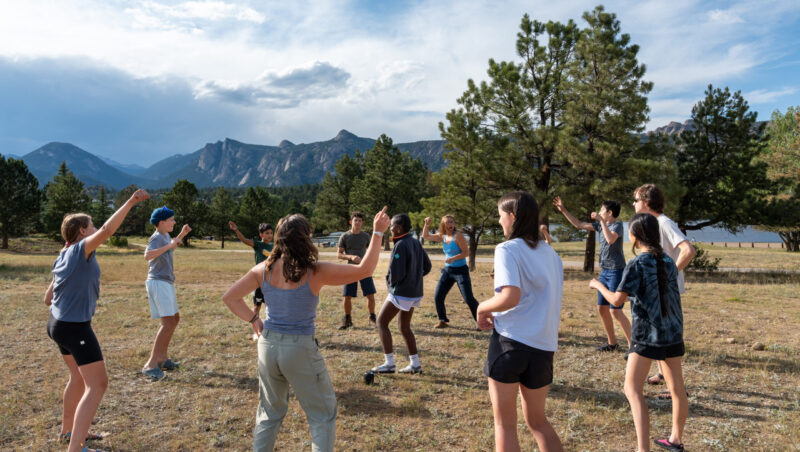Leaders and student playing The Wind Blows on night one of Colorado’s Rocky Mountains.